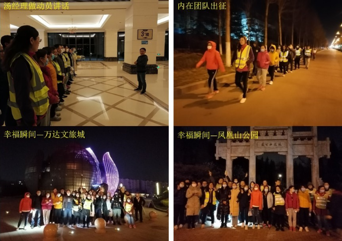 夜晚是讓人可以沉靜的時(shí)間,行走可以讓人與內(nèi)在更好的連接。慢慢降臨的春夜里,新稀寶的夜行大軍已經(jīng)整裝待發(fā),在湯經(jīng)理激情澎湃的動(dòng)員會(huì)之后,浩浩蕩蕩的隊(duì)伍出發(fā)了,沉靜的夜晚靜悄悄,整個(gè)世界都朦朦朧朧的,行走中的力量和能量仿佛一盞明燈,照亮了前進(jìn)的道路。